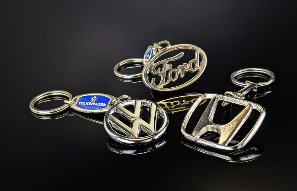 Breloki jednoznacznie kojarzą się z kluczami samochodowymi. W naszej ofercie mogą Państwo zaleźć spersonalizowane breloki motoryzacyjne. Wzór, wielkość, kolor jest dowolny. Na brelokach można umieścić naklejki wypukłe lub można wykonać grawer laserowy. Znakowanie na brelokach może być dowolne, naklejki wypukłe mogą posiadać dowolną szatę graficzną. Breloki do kluczy można zapakować jednostkowo w woreczki foliowe lub pudełka ozdobne.